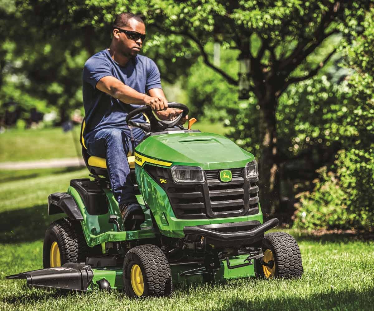 The John Deere 60-inch riding mower is designed for efficient, large-area mowing with superior performance and durability. Its wide cutting deck allows for faster mowing while maintaining a clean, even cut. The mower features user-friendly controls, a comfortable seat, and strong engine power, making it ideal for residential and commercial lawn care. With advanced deck design and robust construction, it ensures long-lasting performance and reliable operation.